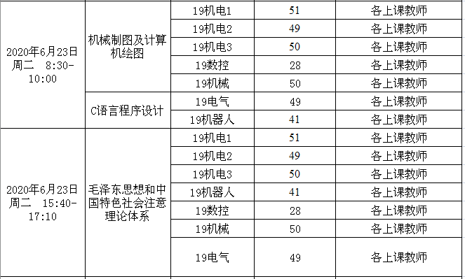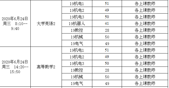 2019-2020-2机电工程学院2019级期末考试安排